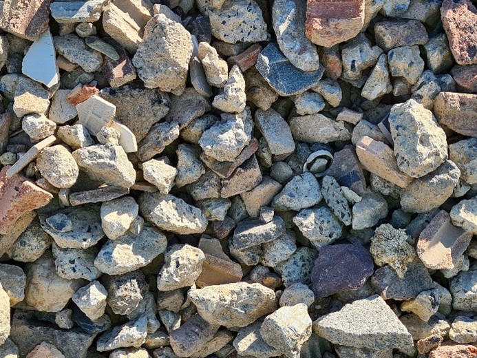 25-100mm coarse crushed recycled concrete well suited for site access for building sites, preventing mud leaving the site, and securing access in adverse weather.